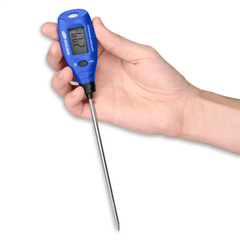 Электронный термометр МЕГЕОН 26500 - это удобное и практичное измерительное устройство, отличающееся миниатюрными размерами и малым весом. В основе его работы лежит контактный метод замера температуры, реализуемый с помощью чувствительного датчика в форме иглы, изготовленного из высококачественной нержавеющей стали. Прибор демонстрирует исключительную точность измерений, сводя к минимуму возможные погрешности результатов.